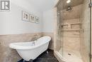 Welcome to this beautifully maintained brick detached home on a quiet, tree-lined street in the heart of Westdale, one of Hamilton's most sought-after neighbourhoods known for its strong community feel, charming character, excellent schools, nearby parks, shops, transit, and close proximity to McMaster University. The landscaped front yard features an interlock stone pathway and single-wide parking for up to three cars, leading into a bright, open-concept main floor with hardwood floors, pot lights, and large windows throughout. The living room overlooks the front yard and flows into the dining area with a grand chandelier and backyard views, while the galley kitchen offers tile flooring and backsplash, granite countertops, stainless steel appliances, and a built-in seating bench framed by a large corner window. A convenient two-piece powder room completes the main level. Upstairs are three bright bedrooms with hardwood floors and a beautifully renovated four-piece bathroom featuring tile floors, a large vanity, a tiled walk-in rain shower, and a freestanding clawfoot tub. The full height basement includes a separate exterior entrance, LG washer and dryer, and laundry sink, offering added flexibility. The private backyard is landscaped with an interlock stone patio and a generous grass area, perfect for relaxing or entertaining-an ideal opportunity to own a move-in-ready home in the highly desirable Westdale neighbourhood. (id:27)